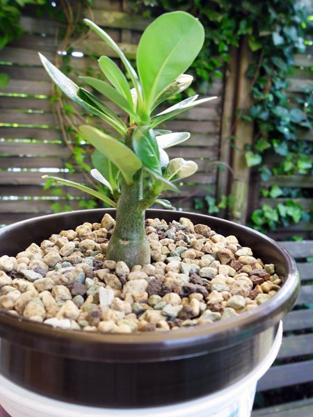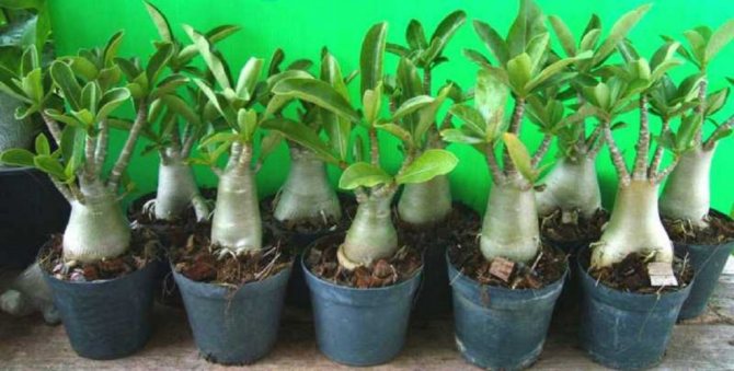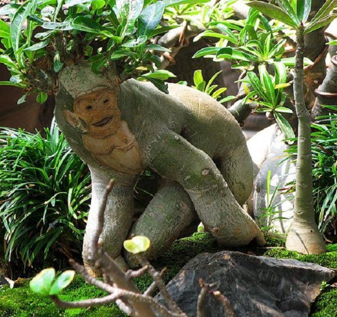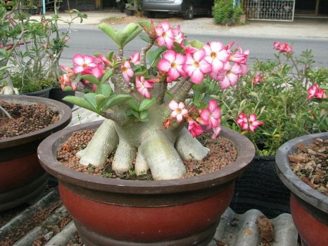 Посаженный адениум похож на бонсай, если вырастить его в виде дерева.