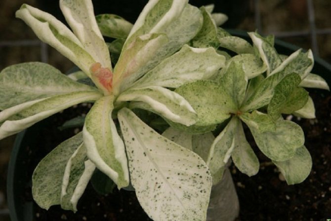 - Если у адениума началась деформация листьев и цветов, то это может свидетельствовать о наличии клещей. При их обнаружении следует срочно принять те же меры, как и для остальных растений.