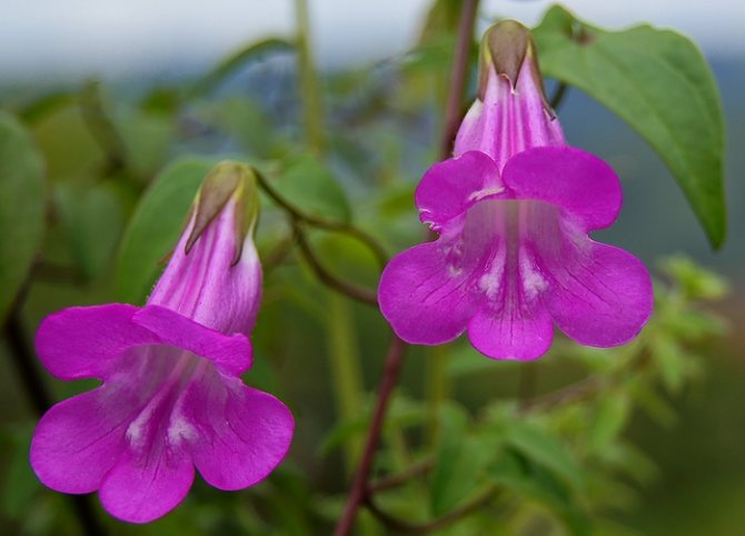 Лазающая азарина (Asarina scandens = Asarina semperflorens) также пришла из Мексики, наиболее известна садоводам и декораторам. У нее разветвленный вьющийся стебель около 3 м высотой, мелкие темно-зеленые листочки, похожие на плющ.