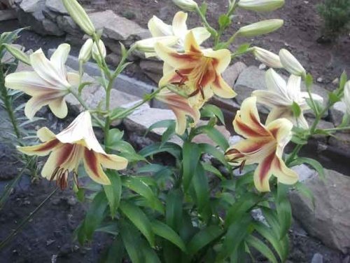 Желательно, чтобы самый нижний ярус лилий зацветал первым, а затем уже начинали цвести средний и высокий яруса посадки – их формируют из высокорослых ориентальных или ОТ-гибридов лилий.