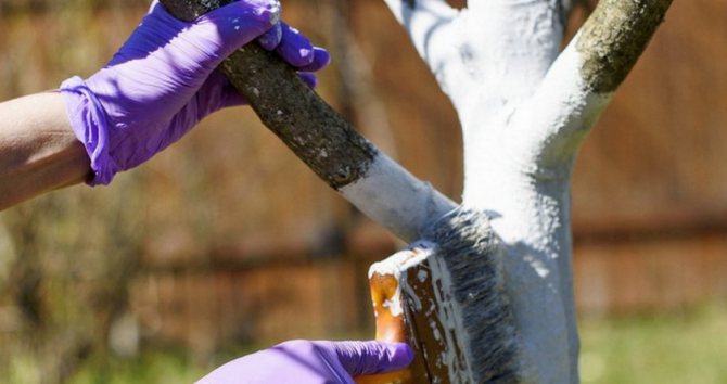 - побелку ствола весной и осенью, что помогает дереву легче переносить температурные перепады;