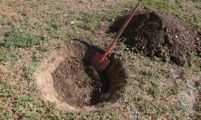 - далее делают яму глубиной 50 см и диаметром 1 м, которую до половины засыпают верхним плодородным слоем, смешанным с перепревшим коровяком, суперфосфатом и древесной золой;