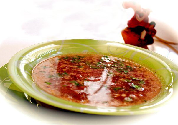 Кинза, грецкие орешки с фасолью дают пикантный вкус. Ведь такое сочетание весьма необычное.