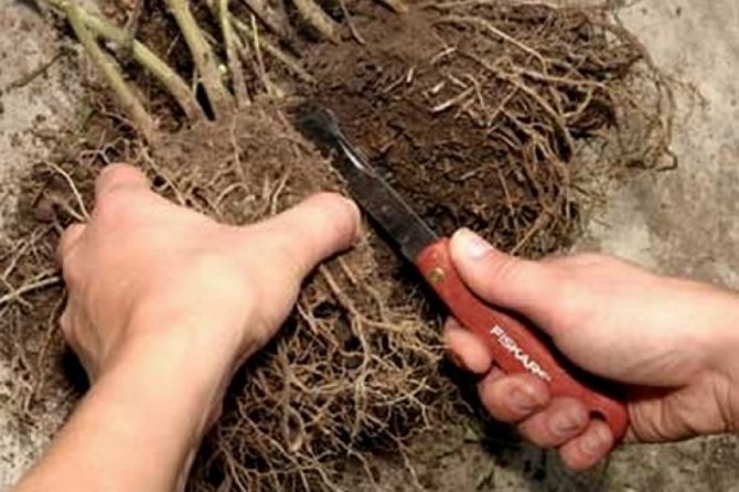 - Затем куст аккуратно выкопать и освободить от комьев земли.
