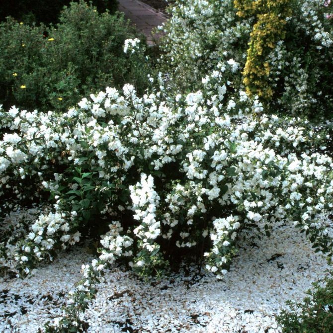 - Гряды с молодым чубушником нужно регулярно освобождать от сорняков.