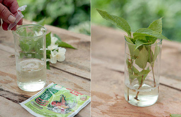 При любом способе черенкования рекомендуется обрабатывать черенки перед высадкой стимулятором роста. Как укоренить чубушник. Можно использовать домашние средства (сок алое, дрожжевой раствор, ивовая вода) или химические препараты (корневин, циркон, гетероауксин). Веточка окунается в раствор на время от 6 до 12 часов.