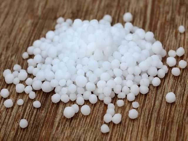 Удобрение в гранулах имеет белый цвет (также выпускаются прозрачные гранулы), содержит большое количество азота (46%).