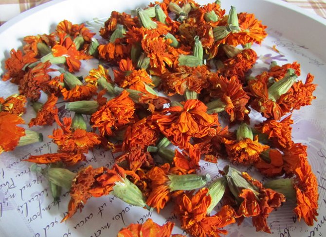 Важен так же правильный сбор бархатцев. Собирать необходимо только цветки, которые уже распустились, но еще не отцвели. Сушите их на открытом пространстве, рассыпав на марле в темном хорошо проветриваемом помещении, с низким уровнем влажности.