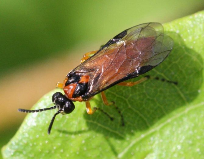 Пилильщик чем-то похож на предыдущего вредителя. Он также поедает плоды, выгрызая мякоть, причем способен сделать это на раннем этапе развития (появления завязи). Чтобы предотвратить уничтожения зародыша, деревья опрыскивают народными средствами.