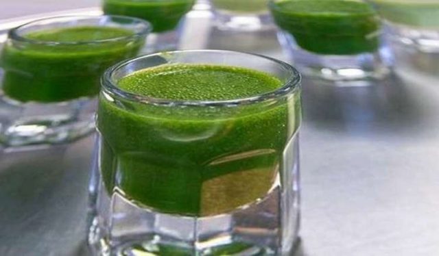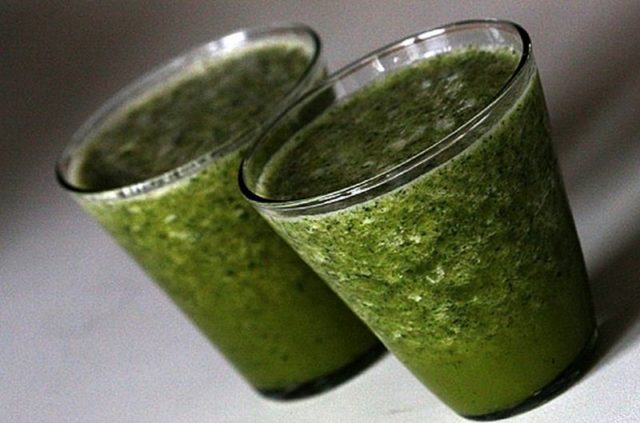 - Через марлю отжимают чистый зеленый сок.