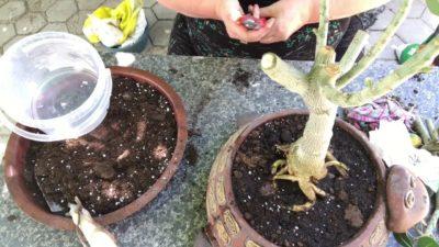 С помощью обрезки формируют крону, ствол и корень Адениума. Почки обладают разной активностью, в зависимости от своего расположения.
