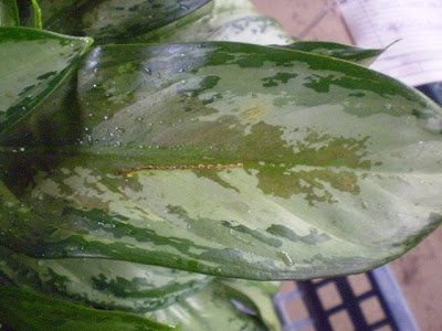 Листья растения могут подвергаться бактериозу, в процессе которого на пораженных участках появляются водянистые пятна с четкими границами по краям. Развитие данного заболевания может быть спровоцировано заражением во время пересадки или черенкования. Для избавления от инфекции нужно опрыскать растение препаратами, содержащими медь.