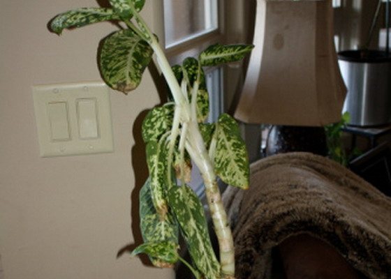 Атракноз провоцируется излишне высокой температурой в помещении, сухостью воздуха, в некоторых случаях переувлажненным грунтом (избыточный полив), чтобы избавиться от этой неприятности, достаточно нормализовать температурный и поливочный режим, пораженные листы можно обработать обычным фунгицидом, чтобы не допустить заражения других листьев; - растение стареет, нижние листья сохнут, опадают, это естественный процесс. Необходимо омолодить его путем черенкования. Для этого оголенный ствол Dieffenbachia нужно порезать на черенки, оставив в горшке только небольшую часть стебля, которая в скором времени даст новый побег и Диффенбахия продолжит свой рост;