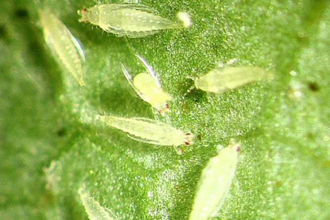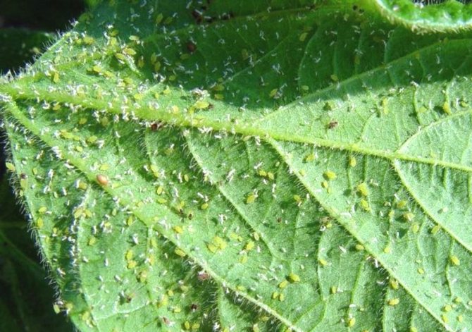 - тля — насекомое, имеющее темно-зелёный окрас, его можно увидеть на внутренней стороне листьев,тля опасна тем, что способна высасывать межклеточную жидкость, ослабляя растение и является переносчиком заболеваний;