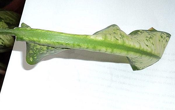 Несмотря на это, растение может заболеть. Иногда случается, что у диффенбахии не раскрываются листья, в результате чего теряется ее красота. Зачастую причина кроется в таких факторах: