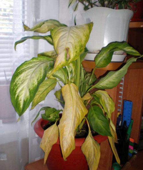 - У Диффенбахии желтеют листья, причины, что делать? Решение проблемы: