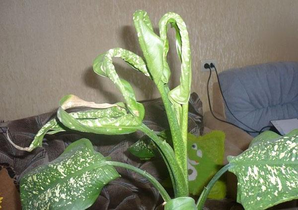 - Диффенбахия сохнет и у нее опадают листья, сохнут и вянут кончики листьев, причины и решение проблемы: