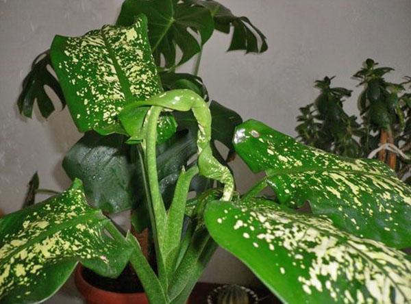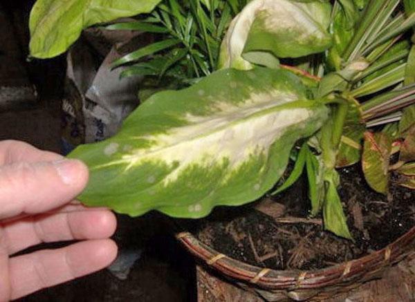 Диффенбахия, вредители которой часто становятся причиной пожелтения листьев, в основном страдает от тли, мучнистого червеца и трипсы. От переувлажнения почвы может развиваться корневая гниль. Если не хватает железа в растении, появляется — хлороз.