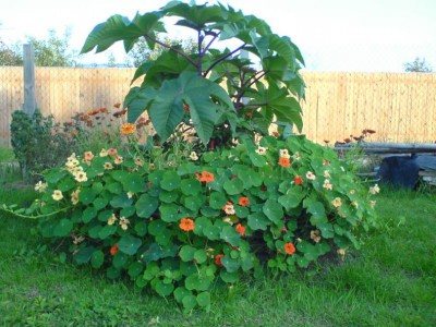Выращивается садовая пальма как фоновое растение, а также как солитер. Оно может создать приятную тень возле дома, закрыть широкими листьями неприглядную часть двора или превратиться в ширму, закрывающую от посторонних глаз зону отдыха в саду. Также из зарослей клещевины легко создать оригинальную живую изгородь, защищающую участок от дорожной пыли.