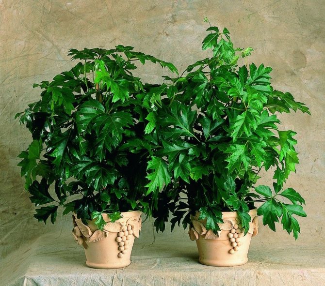 Существует и другой сорт — пальчатый. Он очень отличается от других разновидностей роициссуса. Такое название сорта связано с тем, что листья по своей форме очень похожи на пальцы. Растение выглядит немного чопорно и нарядно. Лучше всего устанавливать на специальных опорах в виде различных фигур.