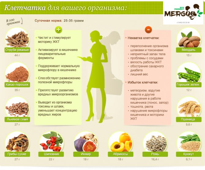 Зная, как клетчатка влияет на здоровье и организм человека, можно увеличивать или уменьшать употребление клетчатки. Для этого нужно знать, где клетчатки много, а где мало.