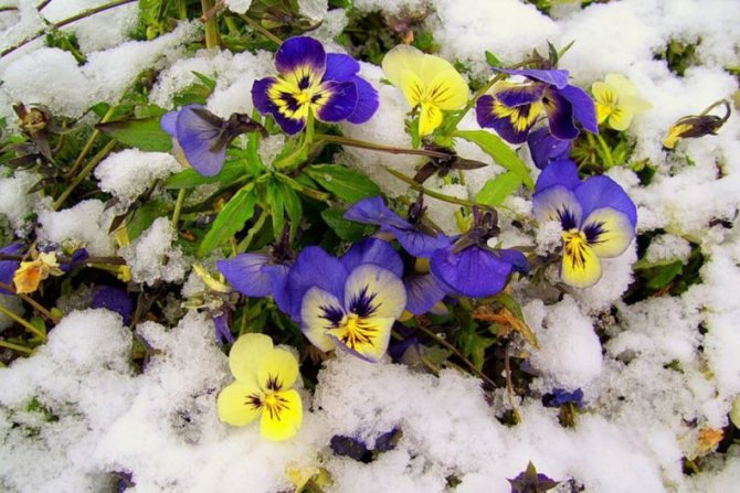 При высадке многолетников важно позаботиться об их зимовке. Виола плохо переносит холода. Растение надо защищать от сильных перепадов температуры с помощью присыпки листвой или ветками хвойников.