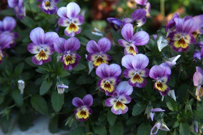 На фото: Виола рогатая (Viola cornuta), или виола ампельная