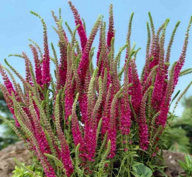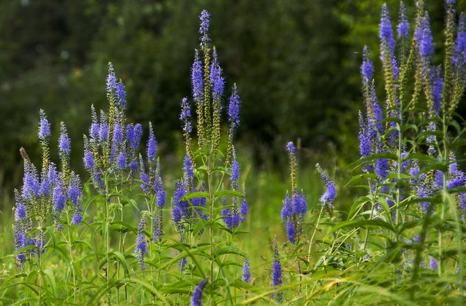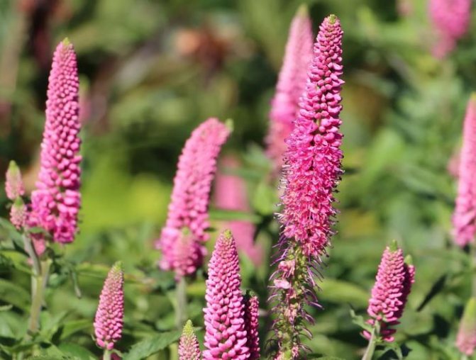 - Цветок вероника колосистая – красивое декоративное растение, используемое для оформления разнообразных ландшафтов. Помимо этого, культура широко известна в народной медицине.