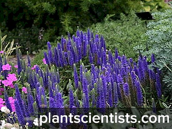 Уход за цветами включает в себя и мульчирование. Оно помогает сохранять почву умеренно влажной без дополнительного полива. Слой мульчи не дает расти сорнякам, упрощая при этом пропалывание. Подвязывание – в этой процедуре зачастую возникает необходимость, если производится выращивание высокорослых сортов. Подкормка: при хорошем плодородии почвы вероника колосковая не нуждается в частых подкормках. Со временем количество элементов уменьшается, поэтому необходимо удобрять почву весной полным минеральным удобрением. Эту процедуру можно производить раз в пару лет. Если же цветок выращивается на бедной почве, то удобрения желательно вносить чаще – дважды в год. Борьба с сорняками – регулярная. Если проигнорировать данный аспект ухода, то цветочная культура одичает, а это негативно скажется на ее внешнем виде. Борьба с болезнями и их предупреждение также включаются в уход за растением. Хоть вероника болеет редко, но изредка все же можно наблюдать ложную мучнистую росу