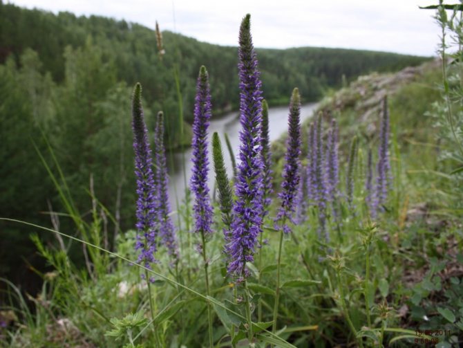 - Цветение вероники колосистой начинается в первой декаде лета и длится около полтора месяца.