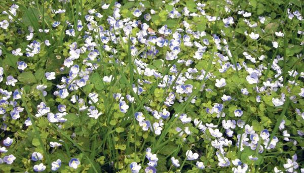 Простертая Вероника образует уплотненный массивный «ковер», высотой 15 см.
