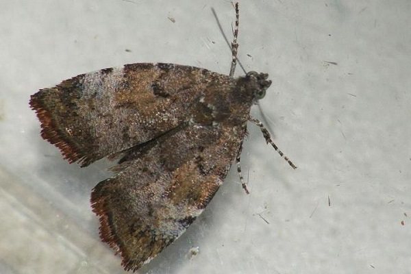 Плодожорка – это маленькое насекомое, немного напоминающее бабочку. В размахе крыльев она достигает 20 мм, ведет ночной образ жизни и селится на разных плодовых деревьях, а также на коре и листьях. Специфический окрас, сливающийся с окрасом древесной коры и ветвей, позволяет ей скрываться от естественных врагов.