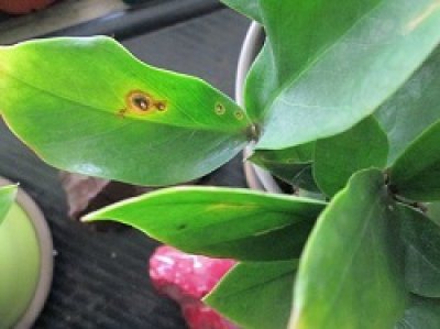 О чем говорят темные пятна на стволе Замиокулькаса? Появление черных и темно-каштановых пятен на листьях и стеблях долларового дерева сигнализирует о совершенных оплошностях при уходе.
