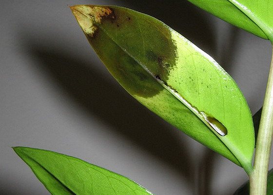 Самая частая проблема, возникающая при выращивании замиокулькаса. Она появляется от перелива и избытка воды в земле.
